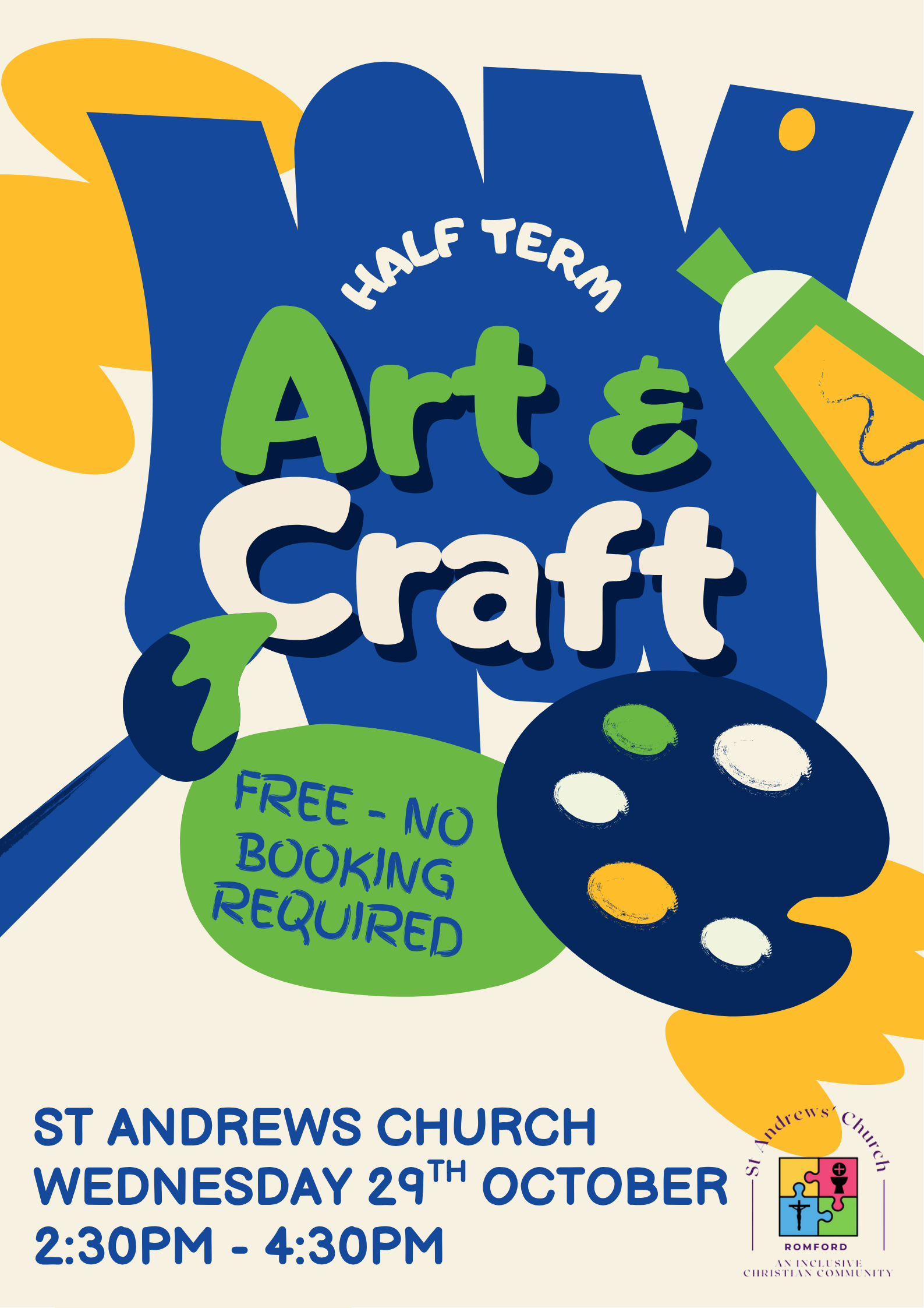 - Half term Arts and Crafts – Wednesday 29th October – 2:30 – 4:30pm – in the church! All welcome!